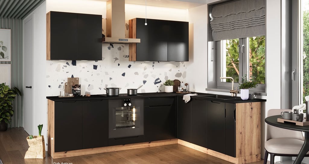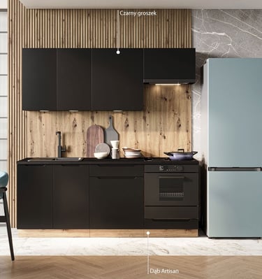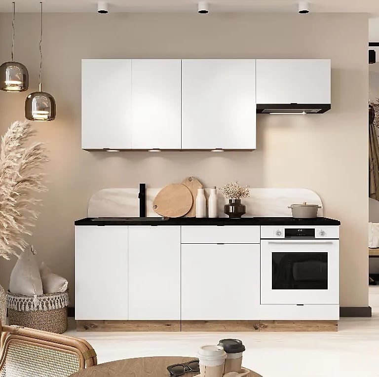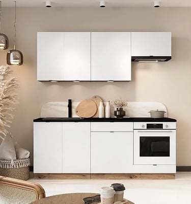 Cuisine compacte parfaitement adaptée aux petits espaces. Fonctionnelle, esthétique et bien pensée, elle maximise le rangement tout en conservant un style.